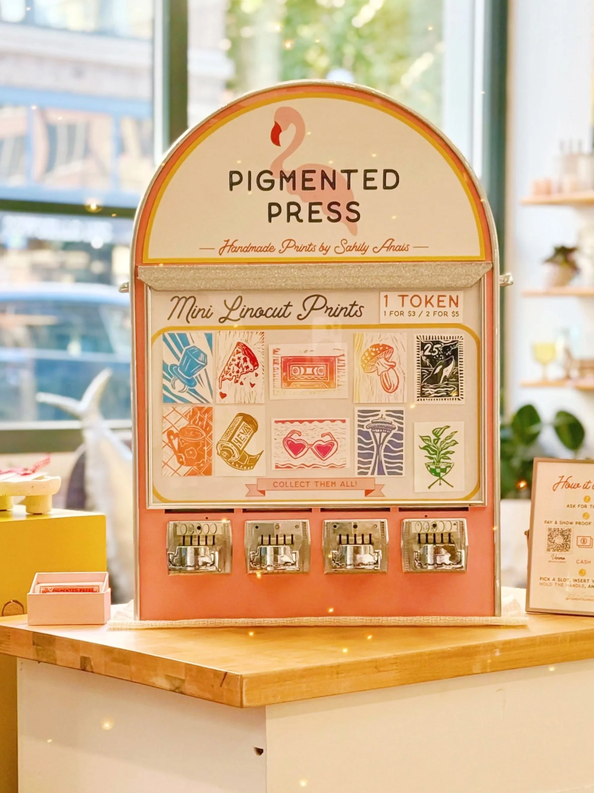 Mini prints make the joys of art accessible to all! My mini print vending machines are where pint-sized art meets the nostalgic euphoria of getting a surprise from a vending machine. Just like the good old days at the roller rink and arcade!