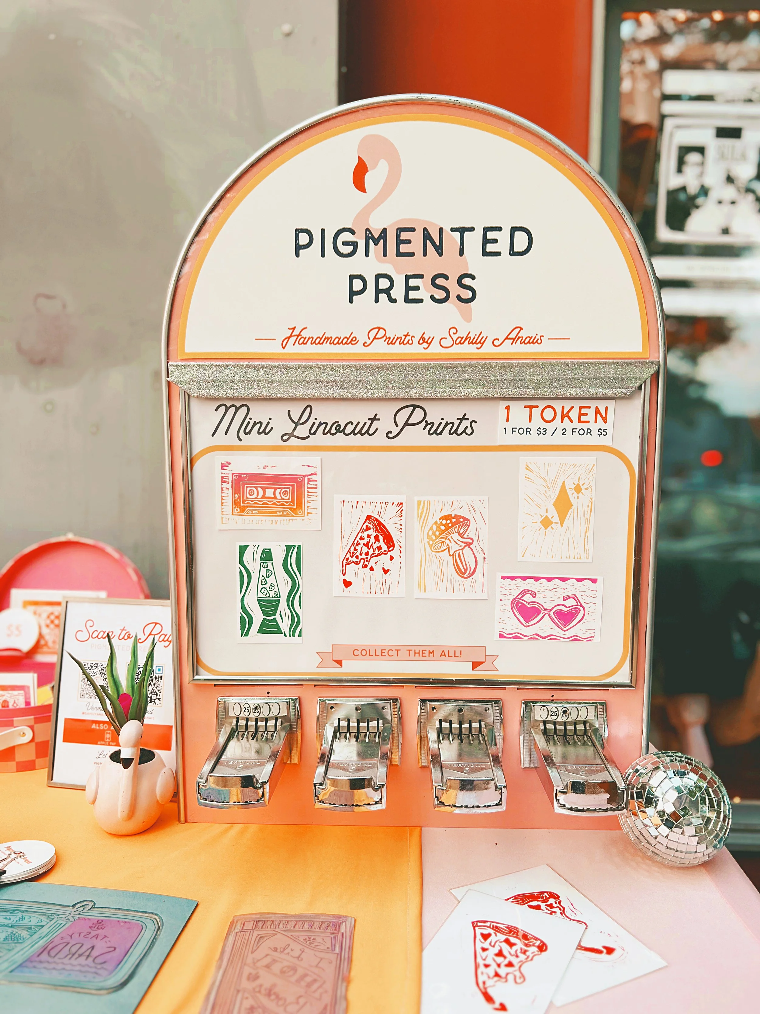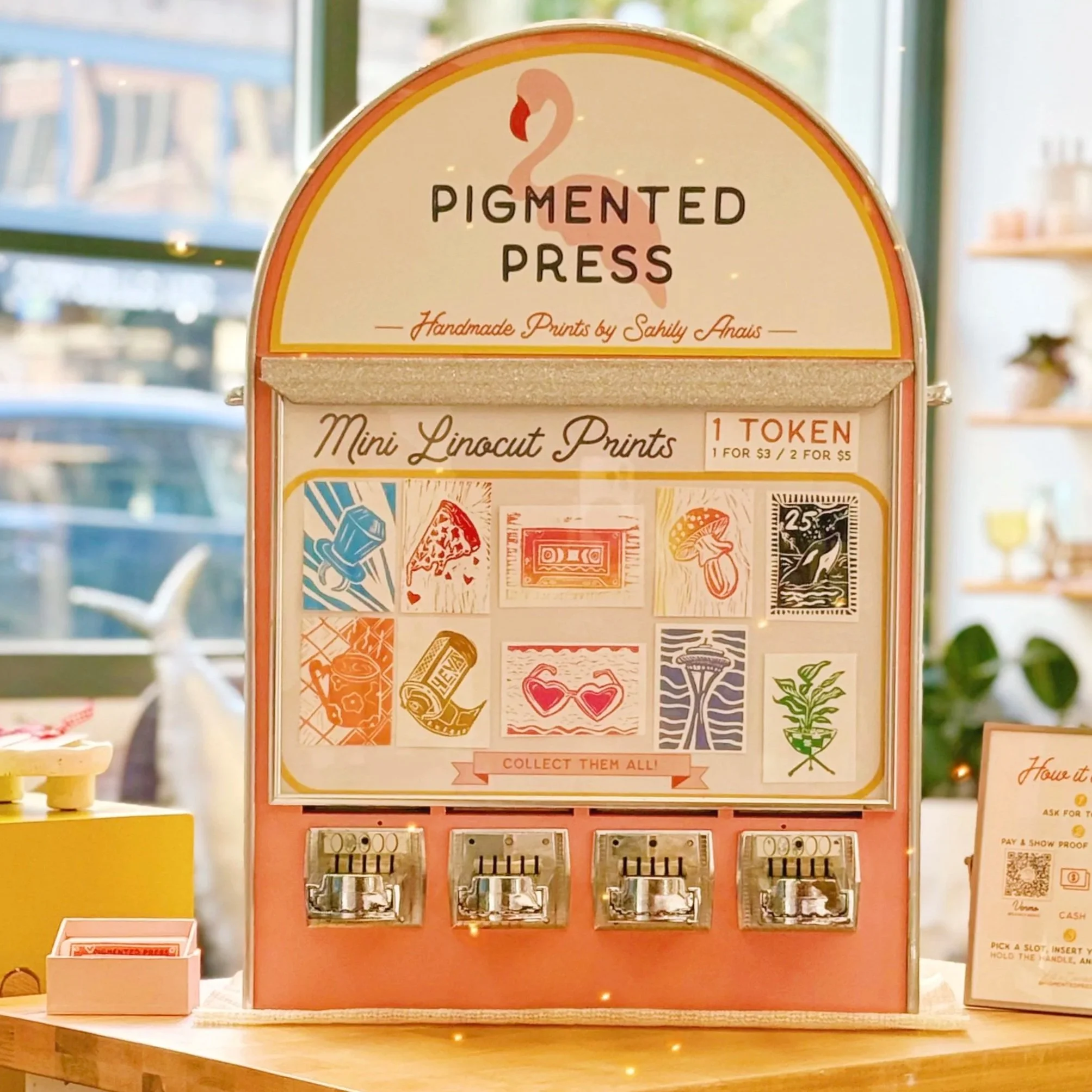 Mini linocut print vending machine