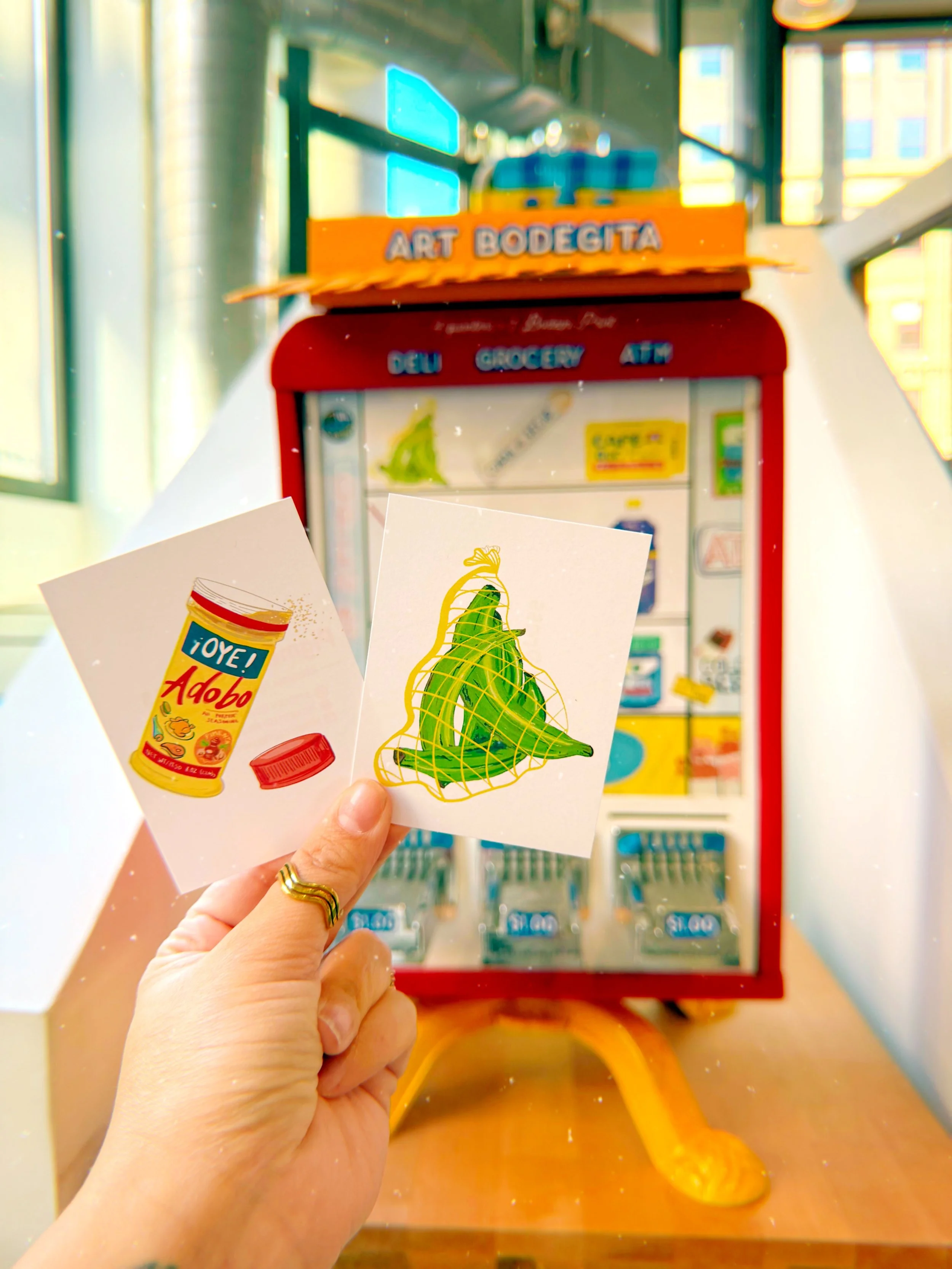 The Art Bodeguita features digital illustrations of common items found at Bodegas and printed on cardstock. The vision for the art bodeguita is to allow everyone to experience a small part of my culture and art in an accessible manner. This interactive art installation is a piece of a much larger collection that I am working on.